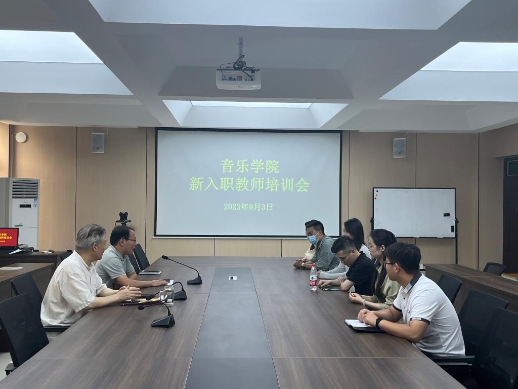 为加强高素质师资队伍建设,帮助今年新入职教师更全面了解学院发展历程、更好掌握各项管理制度和管理要求,尽快转变角色,积极投身到学院教学科研等各项重心工作中,9月4日,音乐学院召开新入职教师培训会,院长王凯歌、党总支书记郑山峰及是2023-2024学年新入职教师参加了会议。