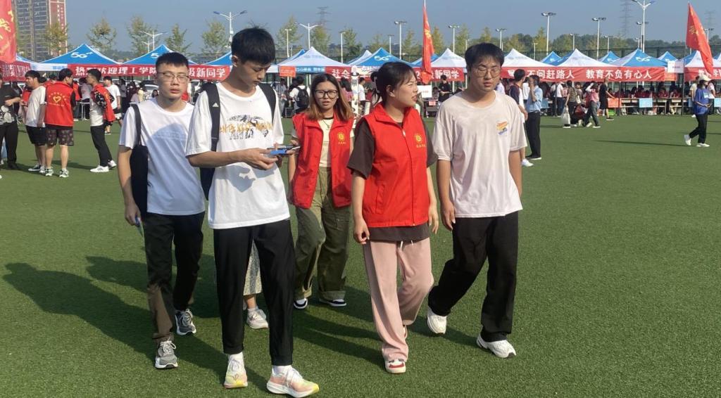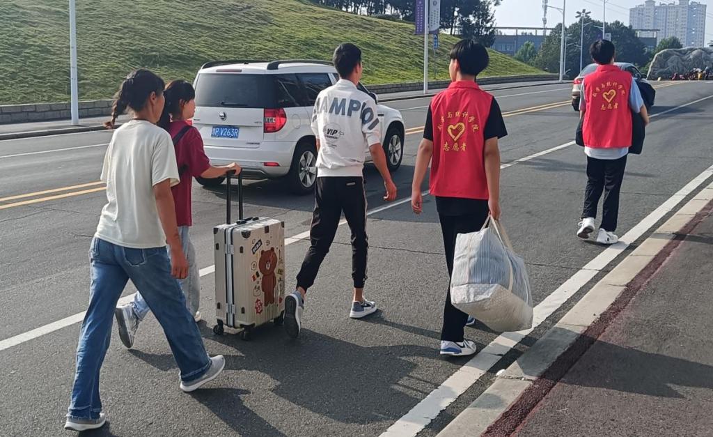 由学生组成的志愿者队伍也在迎新现场紧张的忙碌着,为新生指引道路、搬运行李。