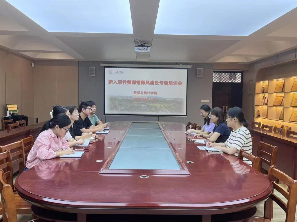9月11日下午,数学与统计学院召开新入职教师师德师风建设专题培训会,学院党总支书记刘颖方,行政干事闫珍珠、教务管理员周文娟,2023年新入职青年教师参加了培训会。