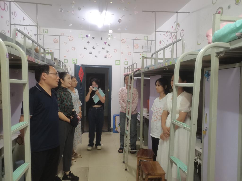 文学院:文学院党总支书记李贇、学工负责人徐远东带领全体辅导员深入学生宿舍进行走访交流。在走访中,他们嘱咐同学们要养成良好的生活、卫生习惯,相互之间要友爱互助,重视安全卫生,树立优良寝风,尽快投入学习,适应新学期生活。