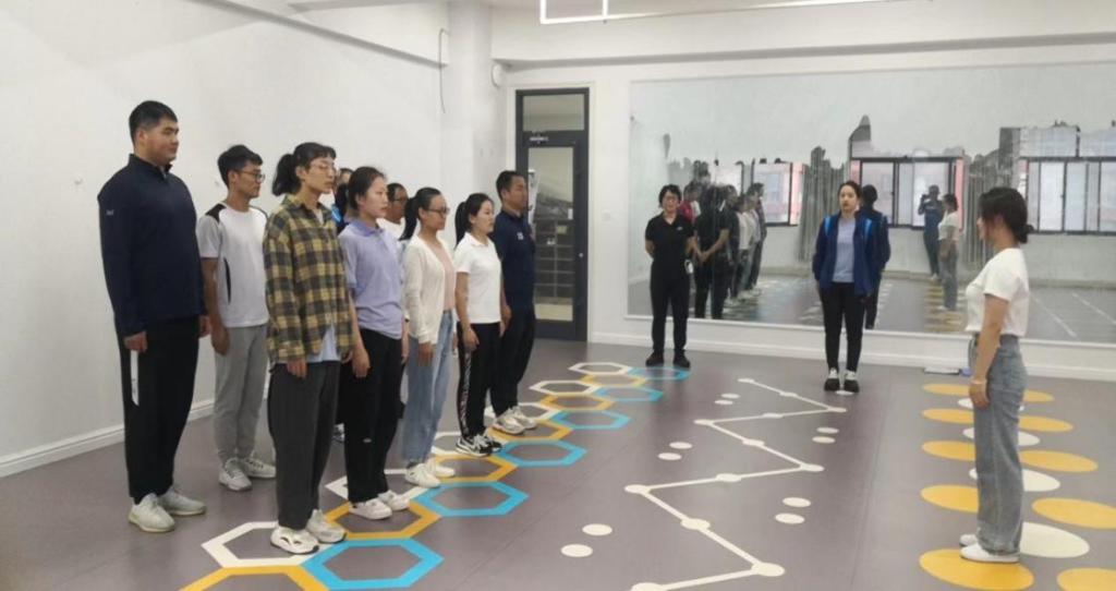 活动中,进行教师互换角色,分两组进行实操演练。在此过程中,孙冬阳老师把我国传统体育武术类项目礼节“抱拳礼”进行展示。教研活动现场氛围活跃,大家全身心投入教研活动中。