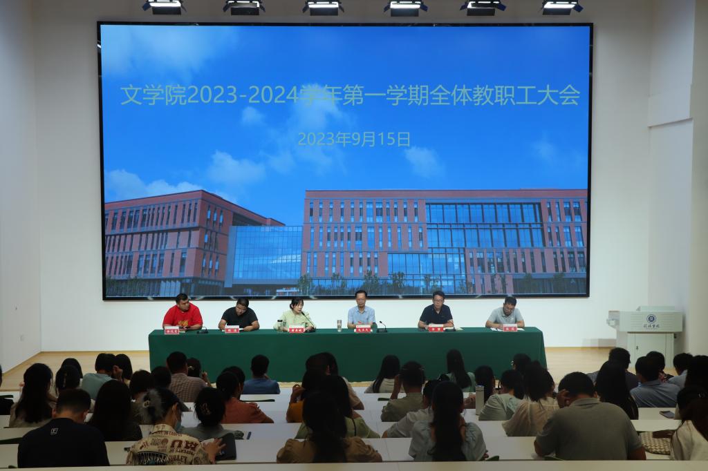 9月15日下午,我院在人文楼112报告厅召开文学院2023-2024学年第一学期全体教职工大会,文学院全体教职工参加此次会议。会议由党总支书记李赟主持。