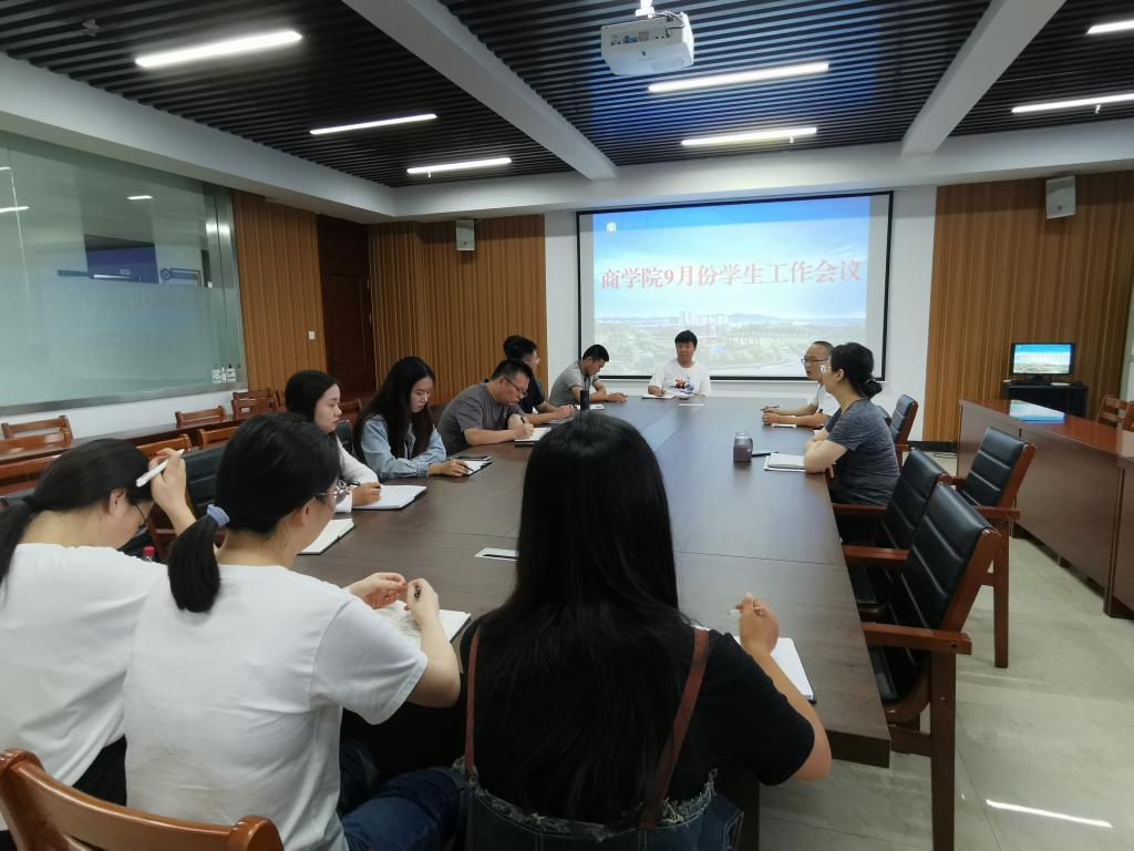 9月19日上午,商学院在综合楼715会议室召开秋季学期学生安全工作专题会,商学院党总支书记胡秀云,学工负责人花端阳、全体辅导员老师参会。会议由花端阳主持。