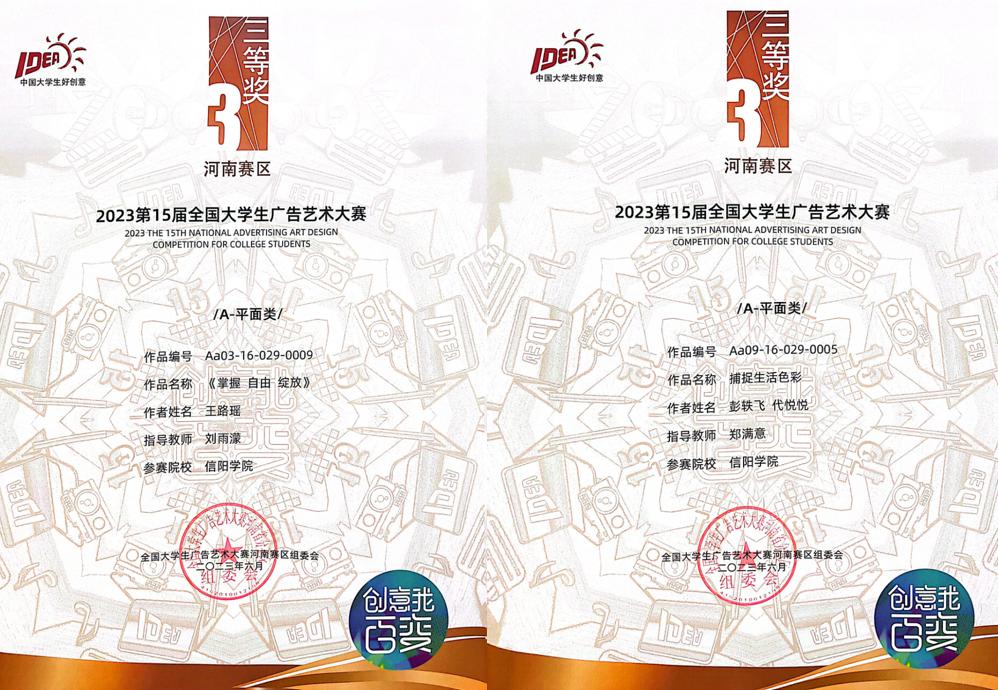 近日,第十五届全国大学生广告艺术大赛评选活动圆满落下帷幕。美术与设计学院师生作品获得全国优秀奖1项,河南赛区二等奖6项,三等奖10项,优秀指导教师5项。