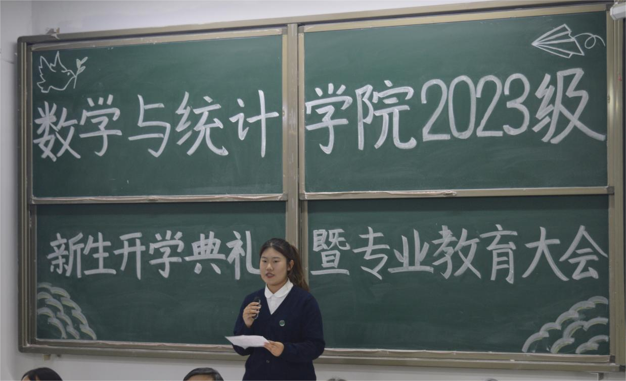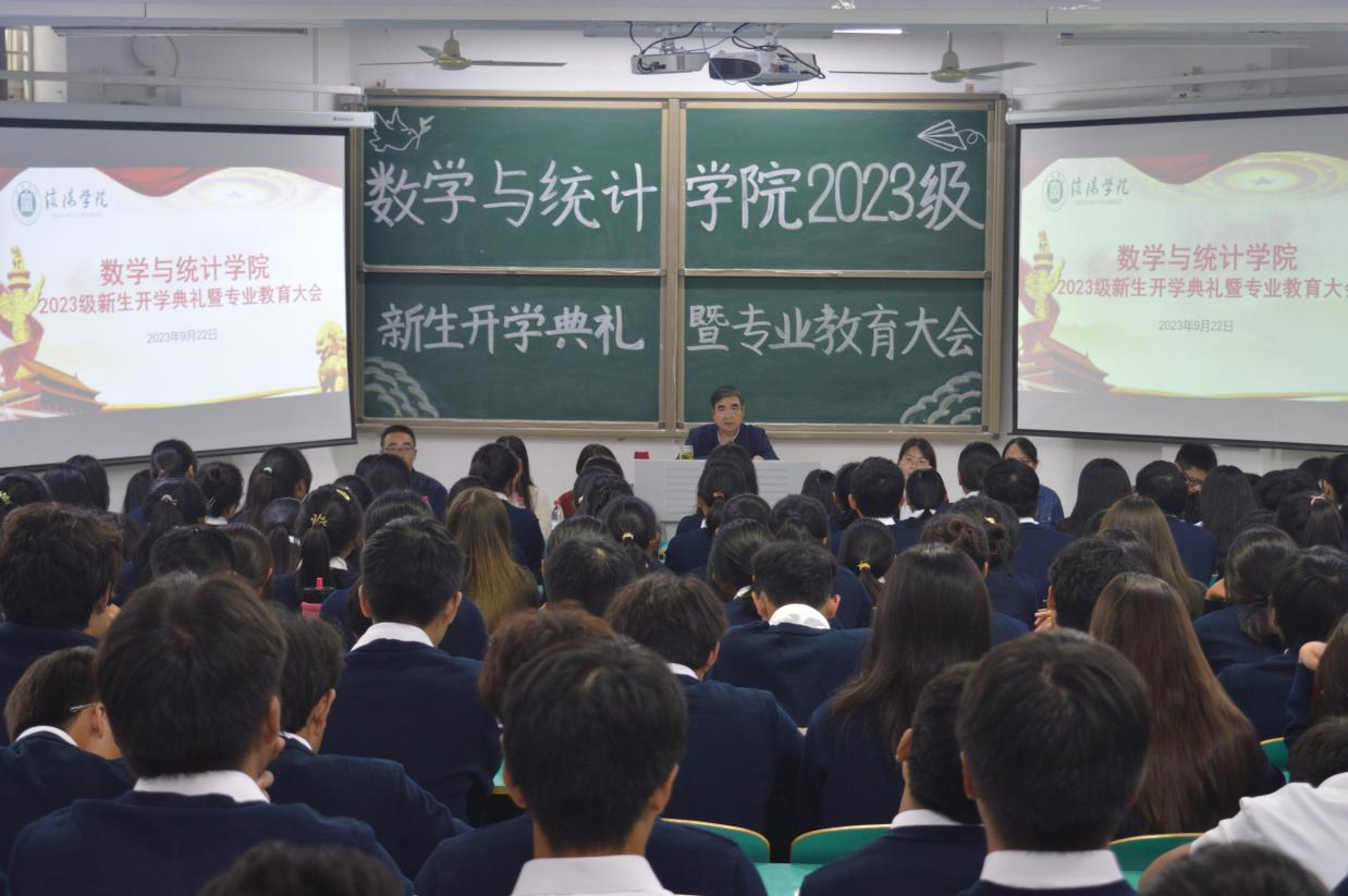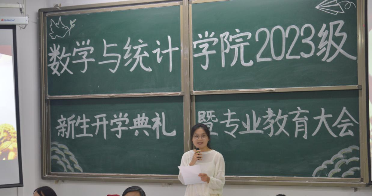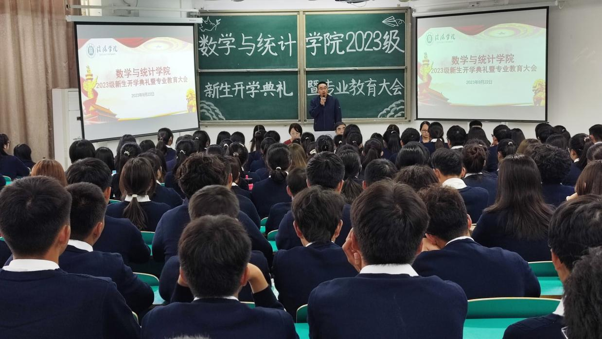 9月22日下午,数学与统计学院2023级新生开学典礼暨专业教育大会在数计楼106教室举行。数学与统计学院院长俞迎达,党总支书记刘颖方、学工干事田媛、行政干事闫珍珠、教师代表王玉磊、新生辅导员孙美及2023级全体新生参加了此次典礼。典礼由刘颖方主持。