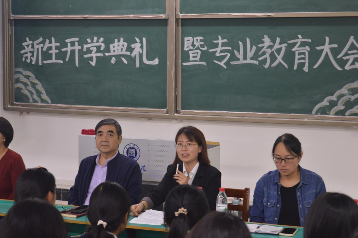 典礼开始,刘颖方代表学院全体教职工向2023级全体新生表示欢迎和祝贺,优秀教师代表王玉磊、老生代表李析、新生代表张心雨分别进行了发言。