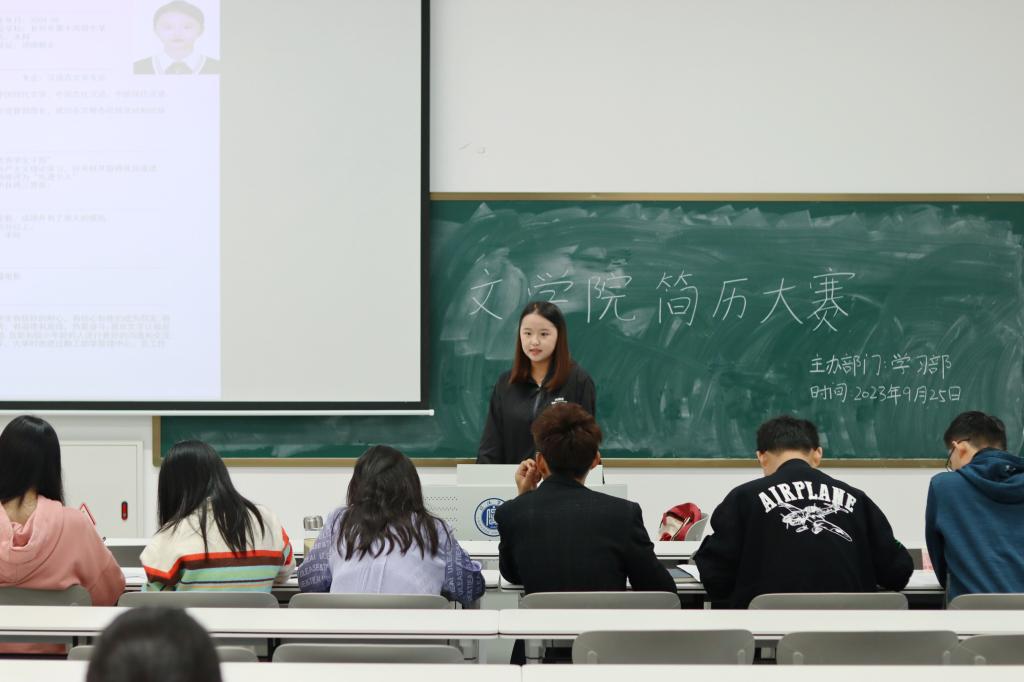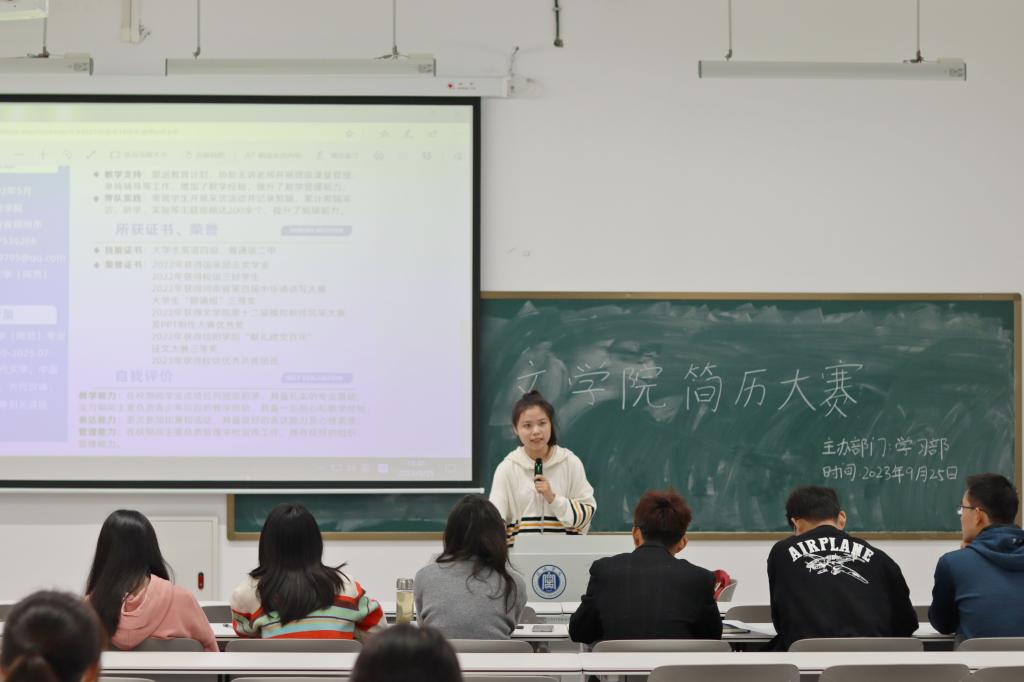 为大力推进就业育人工作,帮助学生明确职业目标,树立正确的择业观、就业观,落实立德树人的根本任务,9月25日下午,我院在人文楼415教室举办2023年简历大赛活动,本次大赛参与人员总计20人,陈彦君、李鑫、黎东升、陶思宇、刘鸣鸣、翟坤六位老师担任评委,大赛由学生会学习部部长李瑞婷主持。