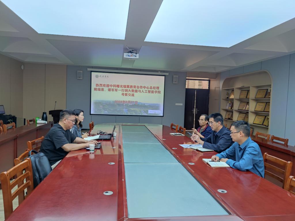 9月27日上午,中科曙光瑞翼教育合作中心总经理姚瑞泉、谭军军一行来大数据与人工智能学院交流座谈。大数据与人工智能学院院长邬长安、党总支副书记毛凤翔、教学副院长黄俊参加此次座谈,双方就校企合作模式、促进人才培养等议题展开了交流。