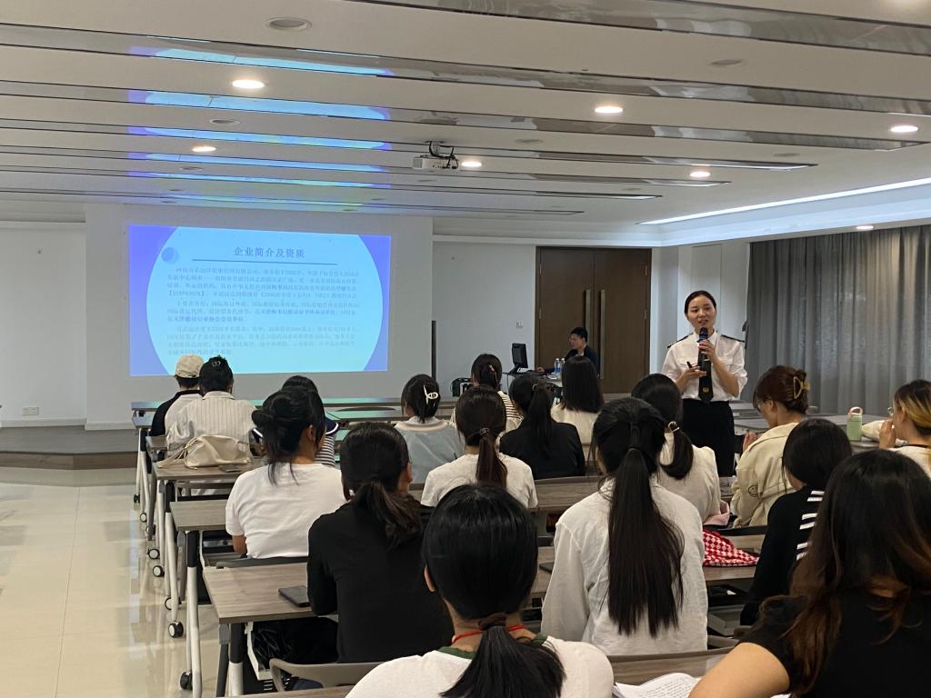 河南方正远洋船舶管理有限公司人事经理刘丹首先向同学们介绍了行业现状、就业市场形势、企业概况、企业文化、邮轮领域的前景等相关信息。随后,介绍了人才需求及招聘岗位的各项情况,鼓励同学们可以主动与企业负责人进行沟通交流,充分了解实习情况,从而做好未来职业生涯规划。最后,刘丹经理与同学们进行了积极互动,就同学们所关心的问题进行了答疑解惑、沟通交流。