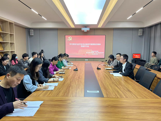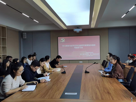 10月10日下午,信阳学院社会科学学院开展师生党支部结对共建行动。第一教工党支部和第一学生党支部、第二教工党支部和第二学生党支部分别在社科楼419会议室举行学习贯彻习近平总书记教师节重要指示精神专题学习会。全体师生党员参加了本次专题学习活动。