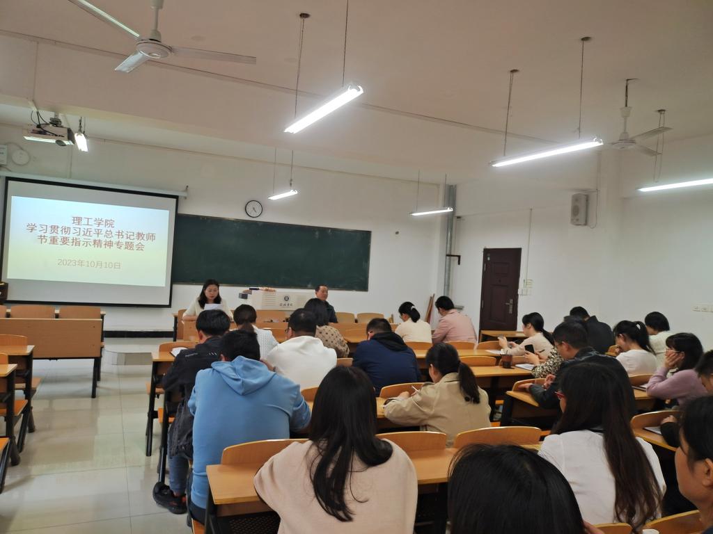 为领会习近平总书记教师节重要指示精神,加强师德师风建设,并有效融入到教育教学工作中,理工学院党总支于10月10日下午在理工楼302室开展了理工学院党总支理论学习中心组集体学习会议。学院院长肖生发、党总支副书记张红梅及全体教师党员参加了会议,会议由总支宣传委员樊瑞主持。
