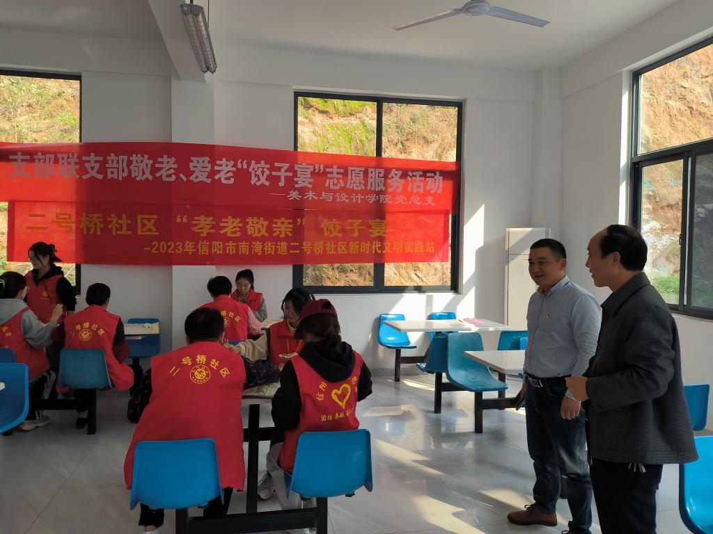 为弘扬中华民族尊老敬老的传统美德,营造和谐良好的社会氛围,在重阳节来临之际,10月10日下午,信阳学院美术与设计学院组织学生党员志愿者前往二号桥社区综合养老服务中心开展敬老、爱老志愿服务活动,为老人送去党的温暖与关怀。