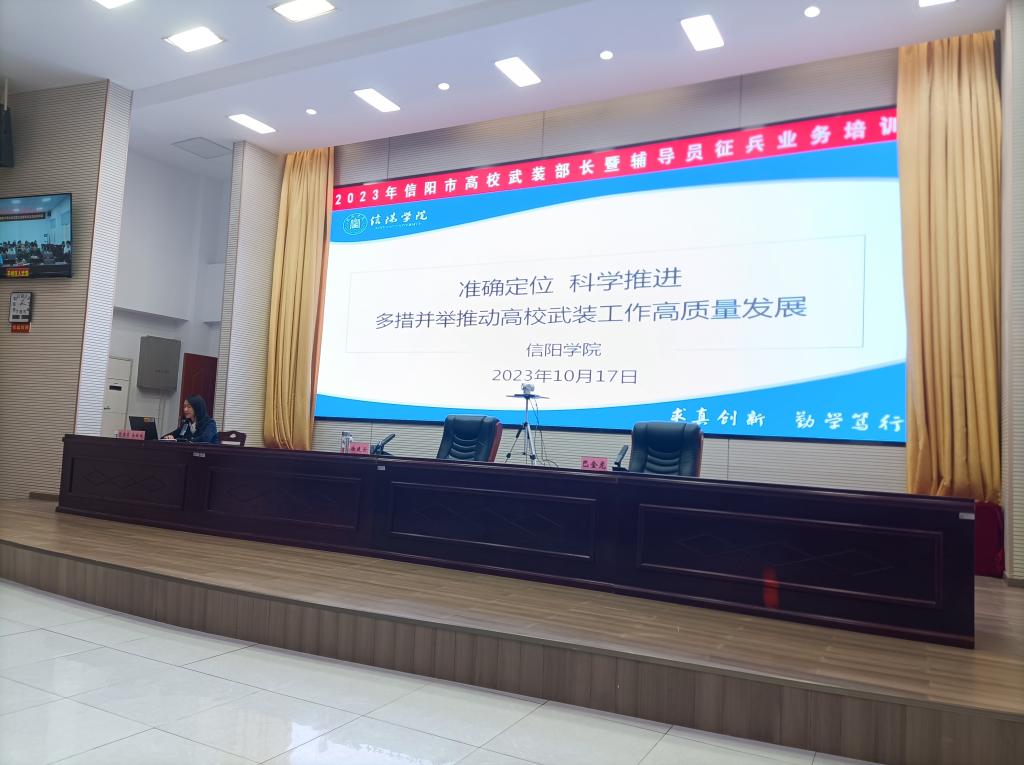 为提升辅导员国防教育素质和能力,促进他们在大学生征兵工作中更好地发挥“一线宣传员”作用,努力为部队输送更多的优质兵员,根据河南省军区动员局和河南省教育厅的统一部署,10月17日,校人民武装部带领我校26名辅导员参加了由信阳市军分区组织的为期三天的驻信高校辅导员征兵业务培训。
