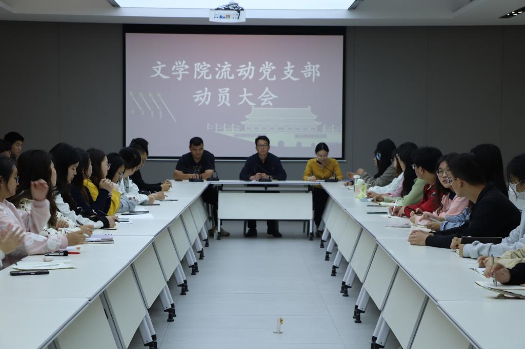 为加强党支部的凝聚力和向心力,2023年10月19日,我院于人文楼406教室召开文学院流动党支部动员大会。文学院党总支书记李赟、学工秘书徐远东、学生支部书记刘娟、全体党员以及积极分子参加了此次会议,会议由学工秘书徐远东主持。