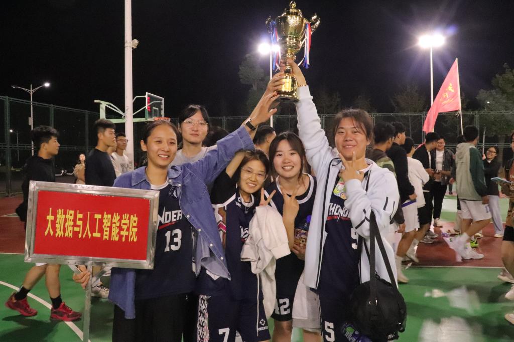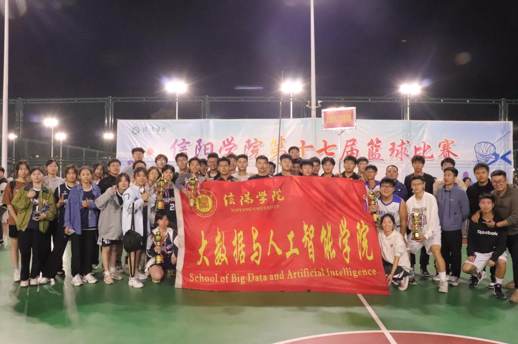 2023年11月2日晚,信阳学院第十七届篮球联赛决赛于西区篮球场圆满落幕,大数据与人工智能学院篮球队取得优异成绩,我院学生组女篮赢得冠军奖杯,学生组男篮赢得亚军奖杯,且截止目前,我院女篮已蝉联三届篮球联赛总冠军!