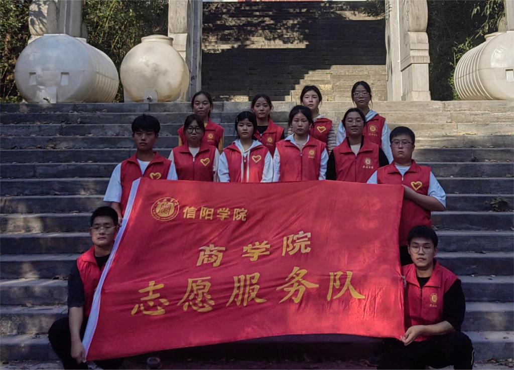 商学院志愿服务队于2023年11月6日在贤山开展“与文明同行,让绿色相随”贤山护绿活动。