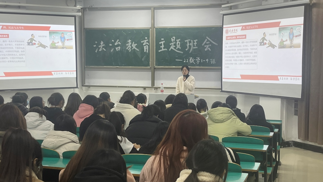 为推动国家安全与法治宣传教育工作的深入开展,提高学生法治观念、树立良好的法律意识,11月9日-14日,数学与统计学院全体辅导员在各班级开展法治教育主题班会。