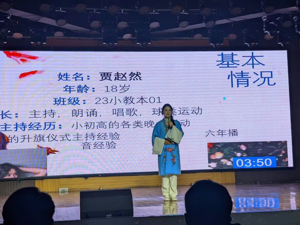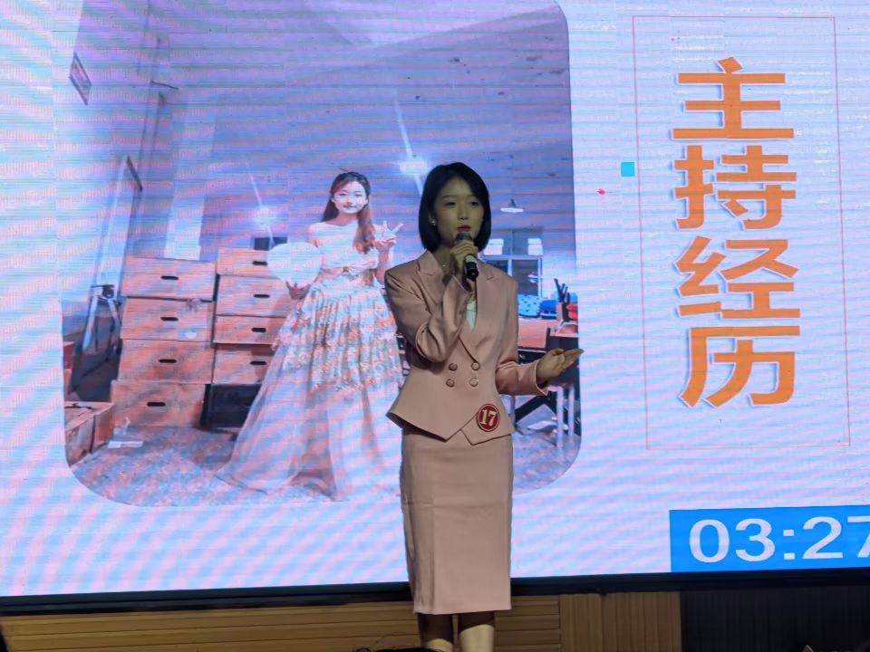 本次比赛共有来自10个学院的21名选手参加复赛,经过层层选拔,共有12名选手从中脱颖而出进入决赛。选手们风格各异的自我介绍和模拟主持赢得了评委和观众的阵阵掌声。