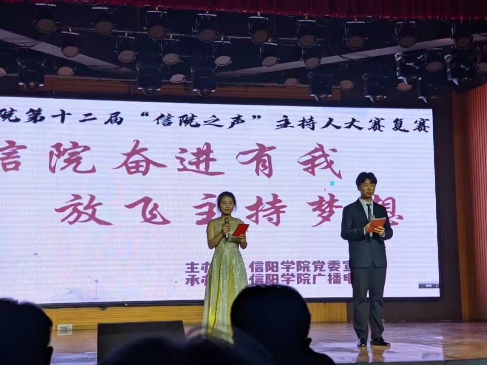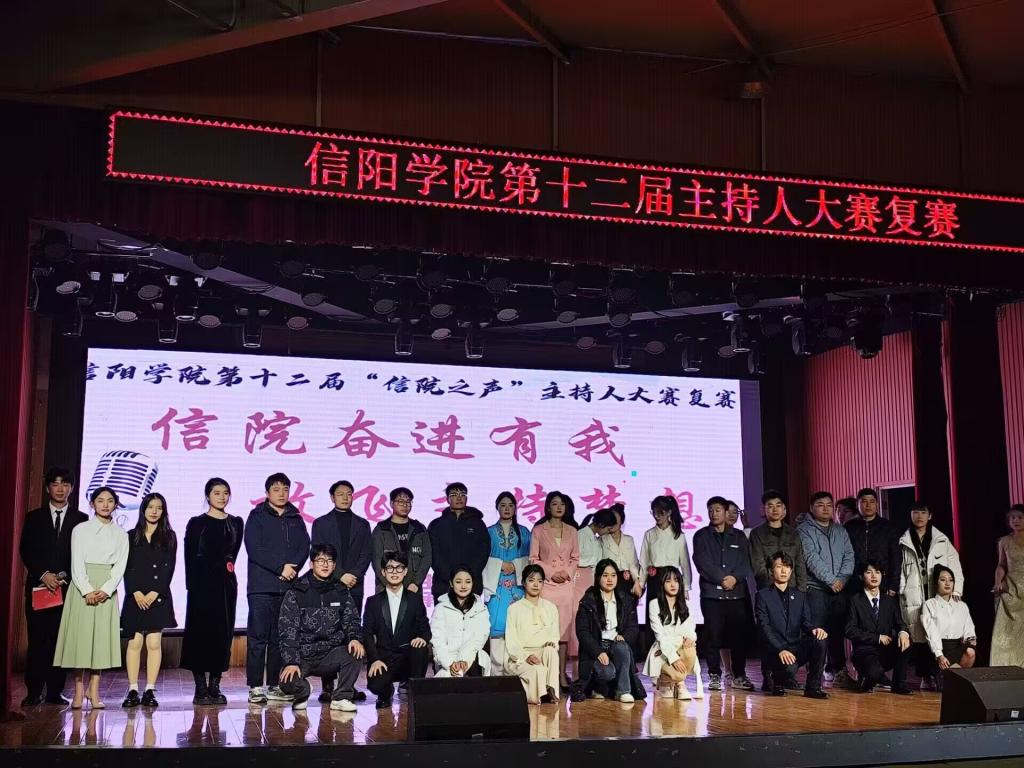 11月14日晚,信阳学院第十二届信院之声主持人大赛复赛在大学生活动中心举行,本次大赛以“信院奋进有我,放飞主持梦想”为主题。外国语学院王延昭老师、文学院翟坤老师、社会科学学院鲁晨龙老师、教育学院林子瑞老师、数学与统计学院胡涛老师、大数据与人工智能学院晏祥老师、理工学院廉伟鹏老师、土木工程学院余根老师、美术与设计学院齐阳阳老师、音乐学院全成老师、党委宣传部项德鹏老师、学生评委张雪儿担任本次复赛评委,各学院选手及广播电台相关工作人员参加了此次活动。