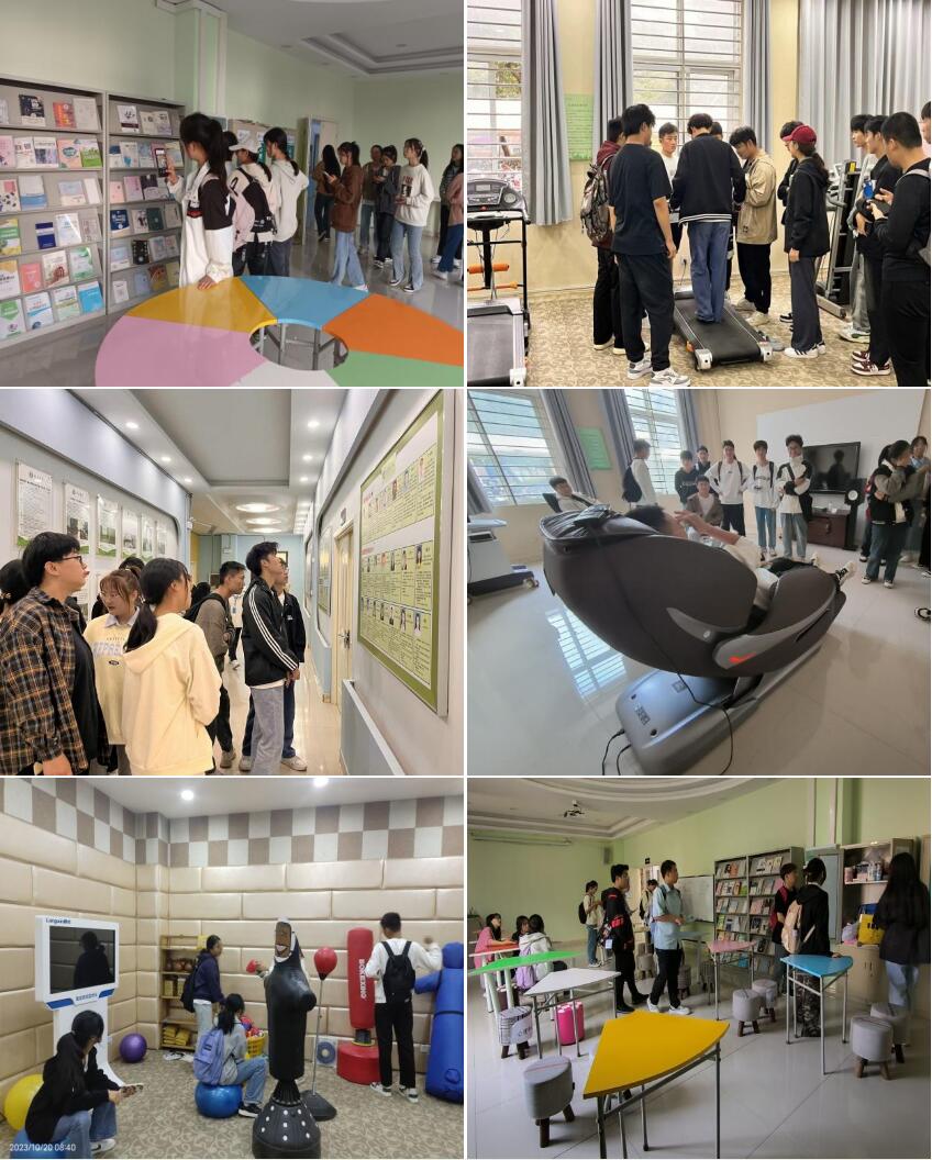 健康周期间,在心理健康辅导中心的统筹和各班心理委员的组织下,123个新生班级有序参观心理健康辅导中心: