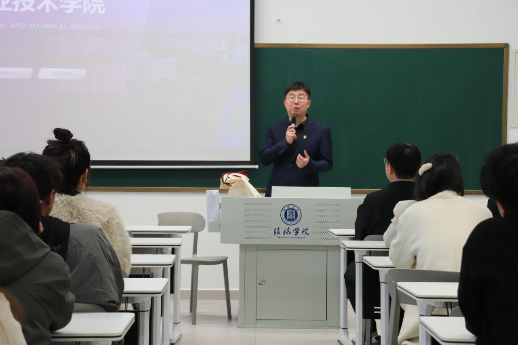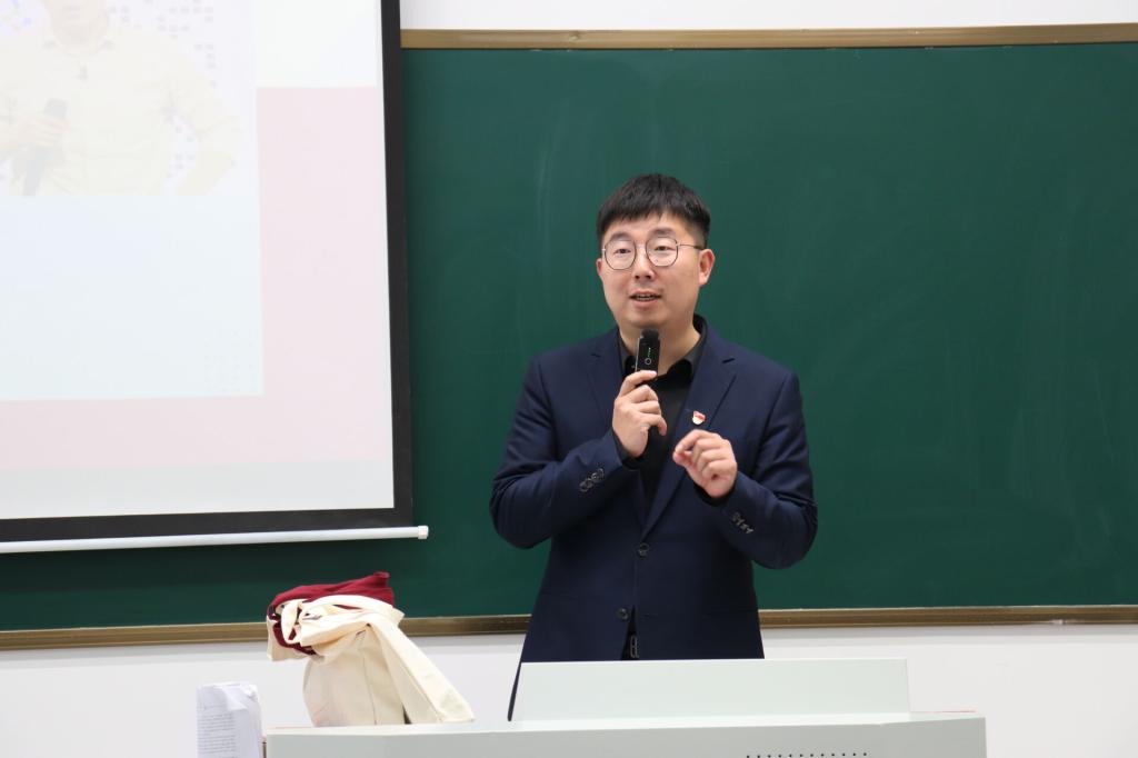 李赟对许心思的到来表示热烈欢迎,许心思毕业于信阳学院汉语国际教育专业,在校期间曾担任学生会主席、馨雅·华艺话剧社副社长等职务,并多次拿到奖学金,是我校优秀校友。学生代表、现任学生会主席姜志千为他献礼,表示我院对校友返校招聘的热烈欢迎和衷心祝福。