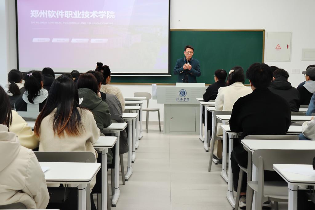 许心思回顾了他的求学经历,亲切地为在场的学生提供了参与招聘会的建议和技巧,同时向参会人员介绍了郑州软件职业技术学院完善的教学设施、业务精湛的教师队伍、完善的教师培训体系、高占比的高级职称教师和“双师型”教师,学院所设专业前景广阔、契合国家战略,处于时代风口之上。他真诚地希望我院毕业生能积极参与应聘并提供了院校联系方式和地址。