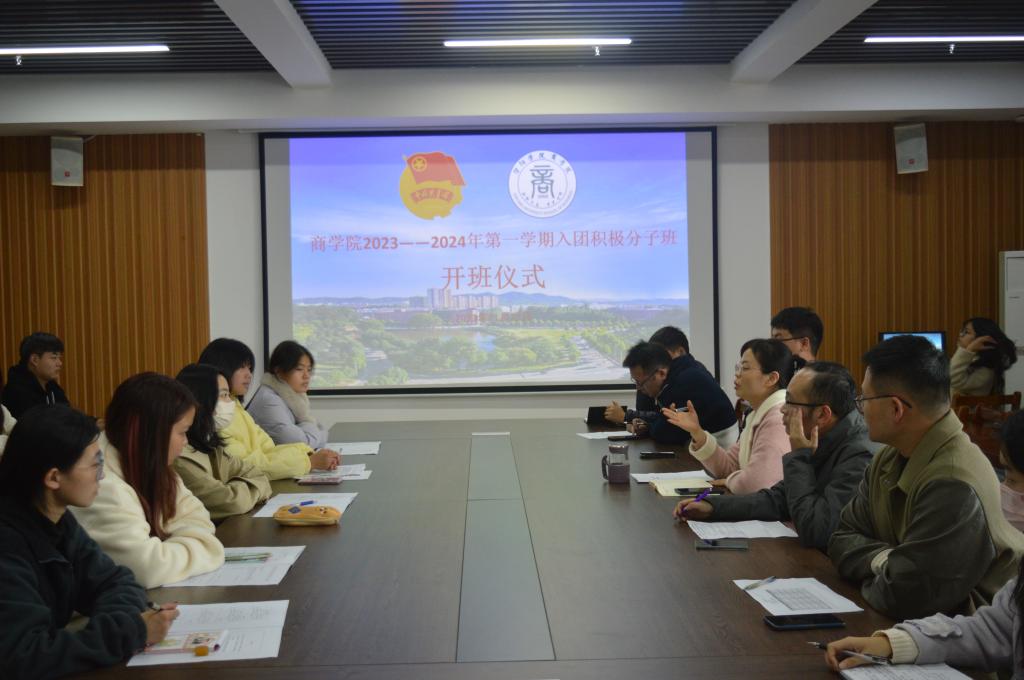 为深入学习贯彻党的二十大精神,加强和改进新时代团员队伍建设和教育管理,严格坚持标准发展团员,提高发展团员质量,把好团员入口关。11月22日,在综合楼715会议室举行了2023—2024年第一学期入团积极分子班开班仪式。商学院党总支书记胡秀云、学工负责人花端阳、团总支书记乔梁、辅导员路方勇、周力、胡艳超、姚梦娜以及21名入团积极分子参加了开班仪式。