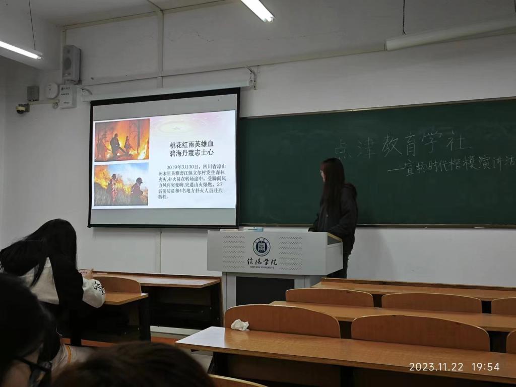 11月22日,教育学院点津教育学社在社科楼207教室举办了宣传时代楷模演讲活动,点津教育学社的全体成员参加了此次活动。