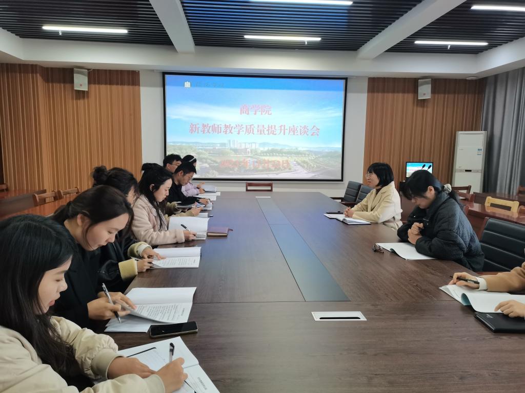 2023年11月23日,商学院在综合楼715举行新教师教学质量提升座谈会。副院长吴新静与2023年新进教师等参与了此次座谈会。