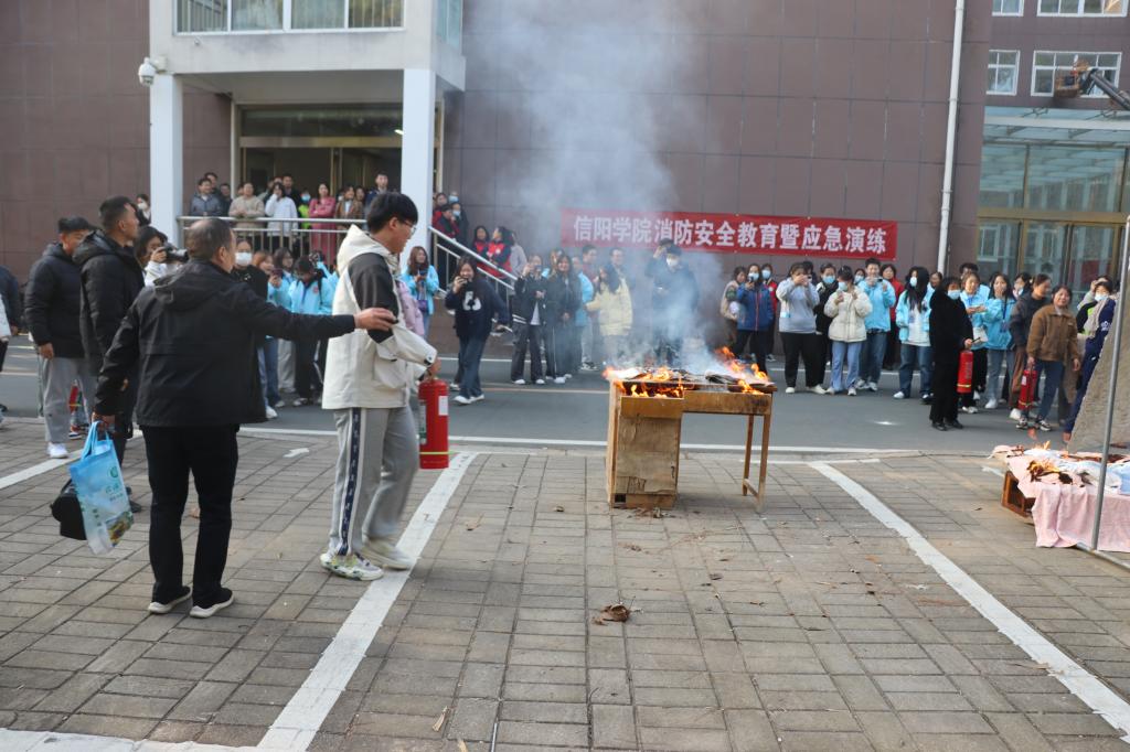 信阳市消防救援支队防火参谋刘琦通过播放火灾警示片、与师生进行互动问答及分析典型的高校火灾案例,详细地向大家介绍了宿舍火灾发生的特点及危害、消防设施器材使用方法、常用灭火方法及注意事项、火场逃生技巧等消防知识及技能。