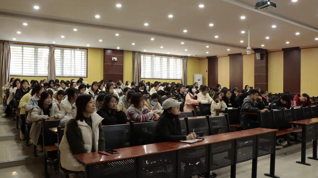 11月28日下午,信阳市百花幼儿园党支部书记、园长张艳应邀在图书馆102报告厅作了题为“一路走来、一路花开”的报告,学前教育教研室全体教师和2023级学前教育专业180余位新生到场聆听了报告,报告会由学前教育教研室主任康耀华主持。