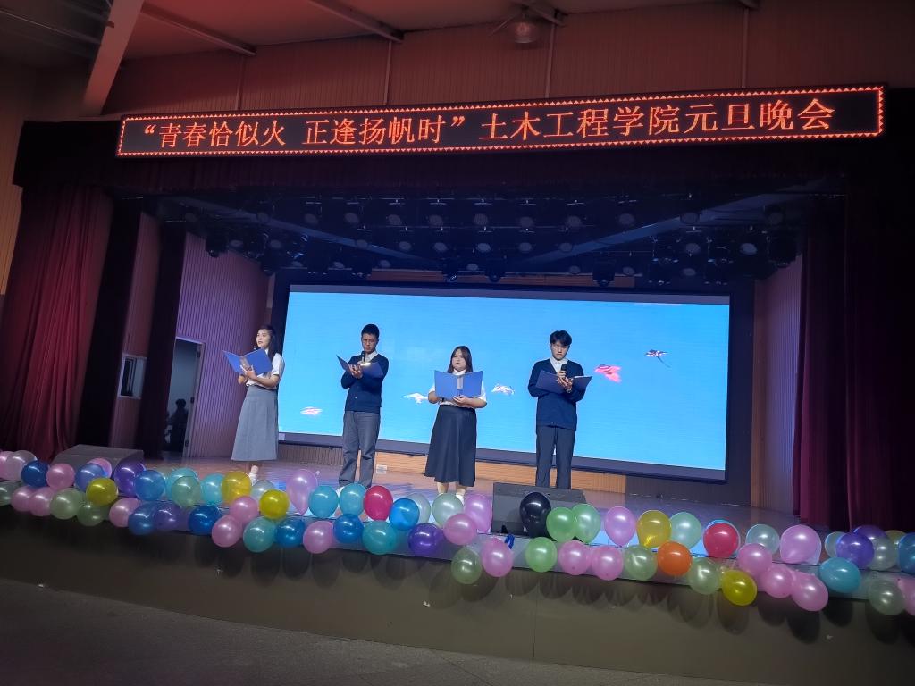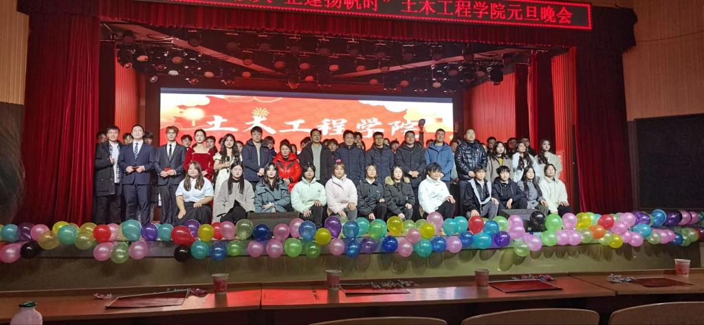 为陶冶情操,丰富同学们校园文化生活,12月20日晚19:00,土木工程学院在大学生活动中心举办了2024年“青春恰似火正逢扬帆时”元旦晚会。学院名誉院长、党总支书记郭二军、教学副院长杨子泉、教师代表及500余名学生共同观看了晚会。