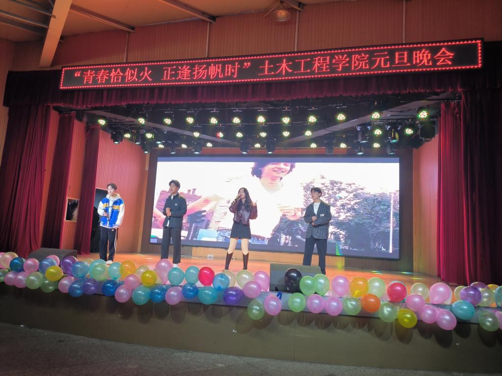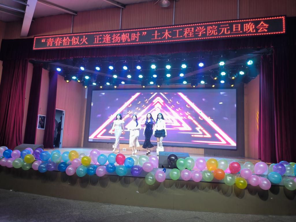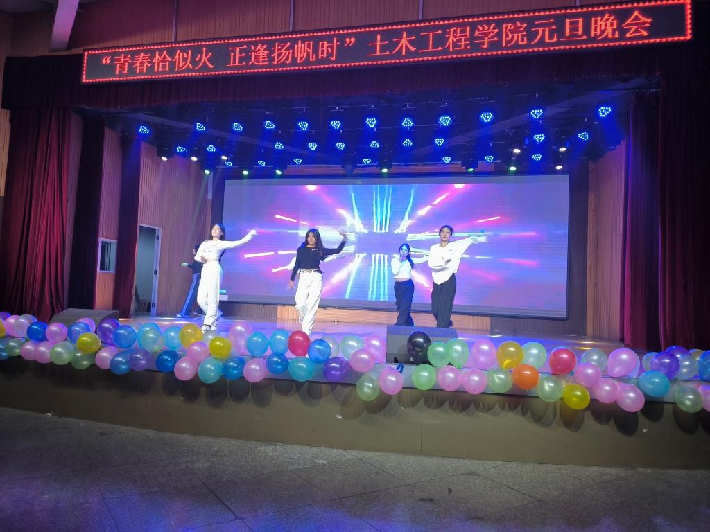 晚会在土木工程学院各班班长带来的热舞中拉开了帷幕。节目丰富多彩,精彩纷呈。歌曲《我的歌声里》《NUNA》悠扬动听;小品《魔高一尺道高一丈》形式新颖,节奏紧凑,让人捧腹大笑的同时也认识到了网络电信诈骗的隐蔽性,为防范电信诈骗再次敲响警钟;民族舞《小城谣》表达了舞者热爱生活的真挚情感,赢得阵阵热烈掌声;相声《元旦记事》诙谐幽默,字里行间透露出节日的喜庆气息;吉他弹唱《风吹麦浪》让人感受到丰收的喜悦;《T台秀表演》将整场晚会推向了最高潮,展现出自信的青春气息,赢得现场观众阵阵欢呼。街舞《Instruction》再次燃爆全场;《新少年游》朗诵者声情并茂,展现出少年奋发向上的精神面貌及青春不负少年时的期望。最后,晚会在全体演出人员的大合唱《明天会更好》的美好希冀中圆满落下帷幕。