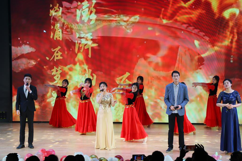 在歌舞《龙的传人》中,老师们的歌喉铿锵有力,绘声绘色,伴舞表演者舞蹈恢宏大气,在龙年到来之际,展现出龙的底色;在相声《爆竹声中一岁除》中,演员们用诙谐幽默的语言讲述新年关于放炮的故事,妙趣横生,精彩绝伦,现场氛围喜气洋洋,为新年平添了更多的喜庆色彩;歌曲串烧《匆匆那年》《天下》《我们都是追梦人》,歌手们或诚恳炽热,或狂热豪放,或柔情似水,为观众们带来了一场跨越时空的属于音乐的魅力;话剧《您的问题》以解决您的问题为主题,揭示社会问题,在欢快中引发思考,以精彩的流行舞蹈结束表演。