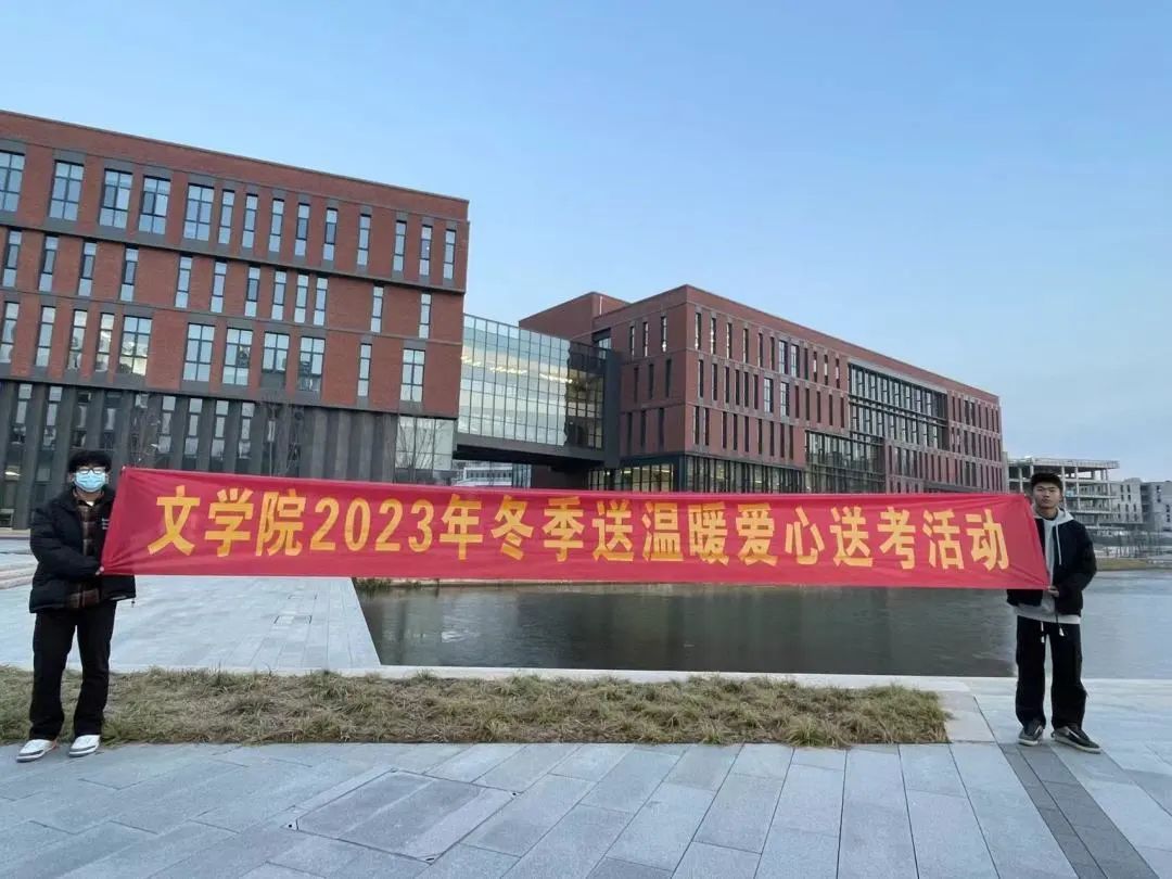 为鼓舞我院考研学子士气,增强考研信心,传递对考研学子的祝福关心。12月23日早上,我院在教学楼前开展文学院2023年冬季送温暖爱心送考活动。文学院院长毛正天,党总支书记李赟,教学副院长黄亚妮,学工秘书徐远东,部分辅导员和学生会成员参与此次活动。