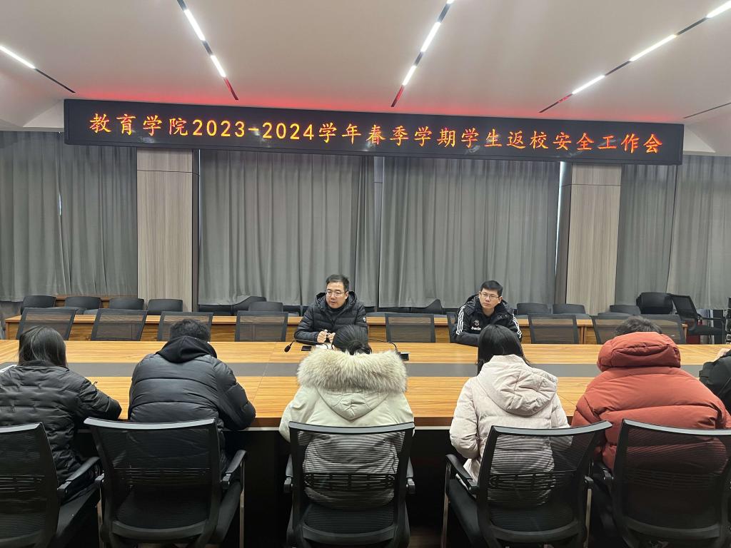 为进一步做好学生返校工作,深入排查安全隐患,确保新学期各项工作有序开展,2月25日上午,我院在社科楼109会议室召开了2023-2024学年春季学期学生返校安全工作会。党总支书记张甲楠、学工干事郝昊及全体辅导员参加了会议。
