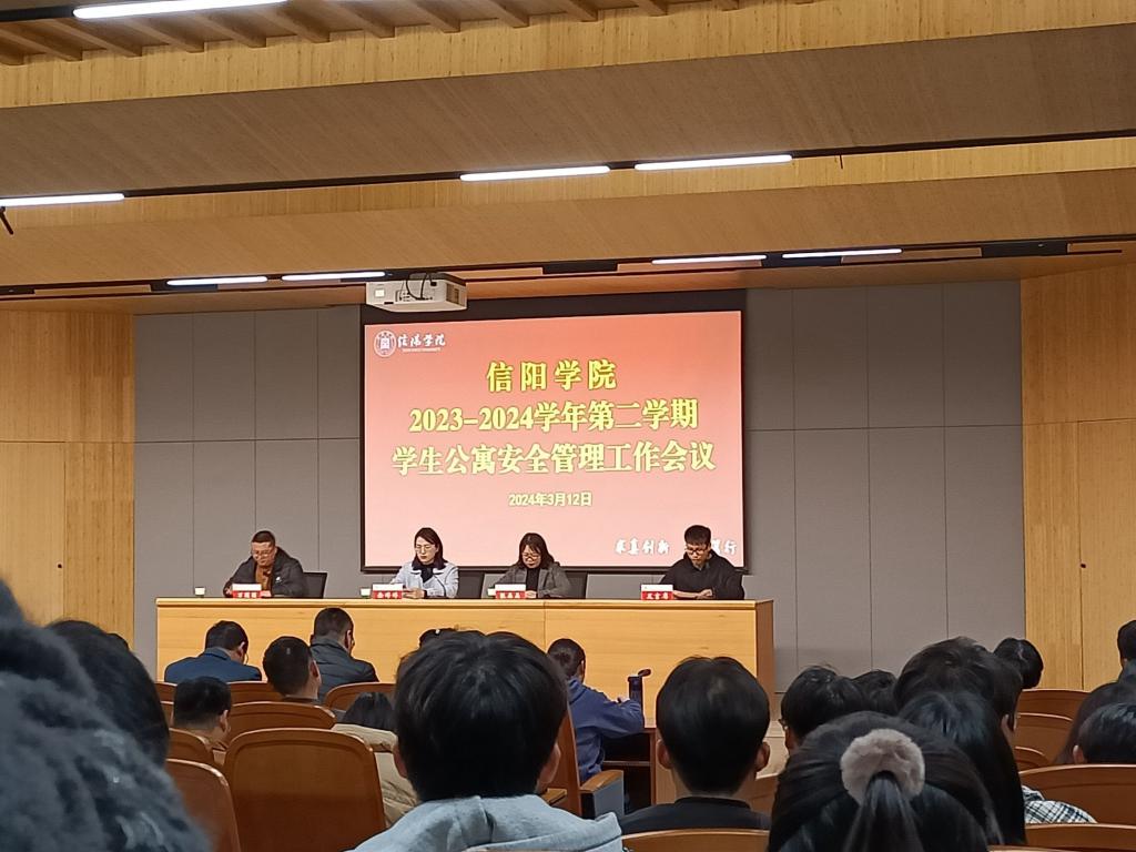 3月12日下午,我校于浉河校区图书馆101报告厅召开2023-2024学年第二学期学生公寓安全管理工作会议。校学生处处长余婷婷、寝教楼管理中心负责人万圆圆、大学生心理健康辅导中心张晶晶、各学院学工负责人出席会议,各学院辅导员及寝室长、楼层长代表参加了会议。万圆圆主持了会议。