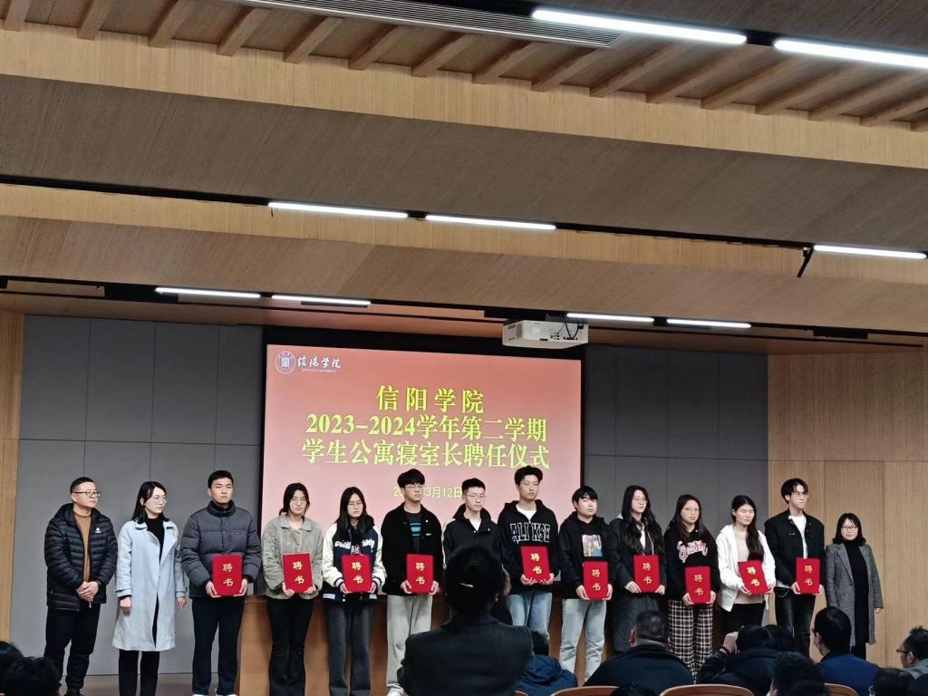 余婷婷、万圆圆、张晶晶共同为寝室长、楼层长代表颁发了聘书。余婷婷指出,寝室虽是学校内最小的管理单元,但却是最基础重要的堡垒,希望受聘的同学做好带头引领作用,为校园稳定、同学和睦夯下最坚实的基础。