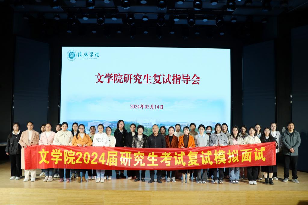 为确保我院研究生复试工作顺利开展,3月14日下午,我院特邀黄淮学院张天明教授及我校外国语学院陈彦慧副教授、文学院杜泳林副教授于教学楼113学术报告厅召开2024届研究生复试指导专题会。本次复试培训以课程教学(语文)为示范,其它方向过国控线学生现场观摩的形式进行。文学院院长张凌江、党总支书记李赟、教学副院长黄亚妮、教学秘书陈浩、毕业班辅导员参加了此次活动。会议由教学副院长黄亚妮主持。