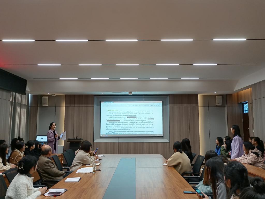 王贝贝从英文自我介绍和复试常问问题两方面给大家作了系统的梳理和示范,她指出自我介绍要突出重点,充分发挥自身优势,以落落大方、自信从容的姿态面对评委;对于不同的问题,要有灵活的应对方式,既要凸显专业性,还要能随机应变。