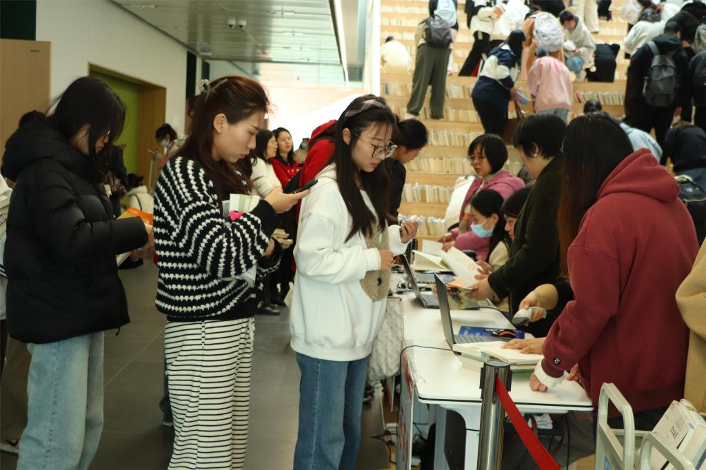 活动现场,学生有序查找感兴趣的书籍,排队办理借书业务。文学院院长张凌江对现场良好借阅氛围进行高度赞扬,表示要持续坚定推进学风建设工作,坚持定期开展送书活动,为学生提供便利,营造浓郁书香气息。