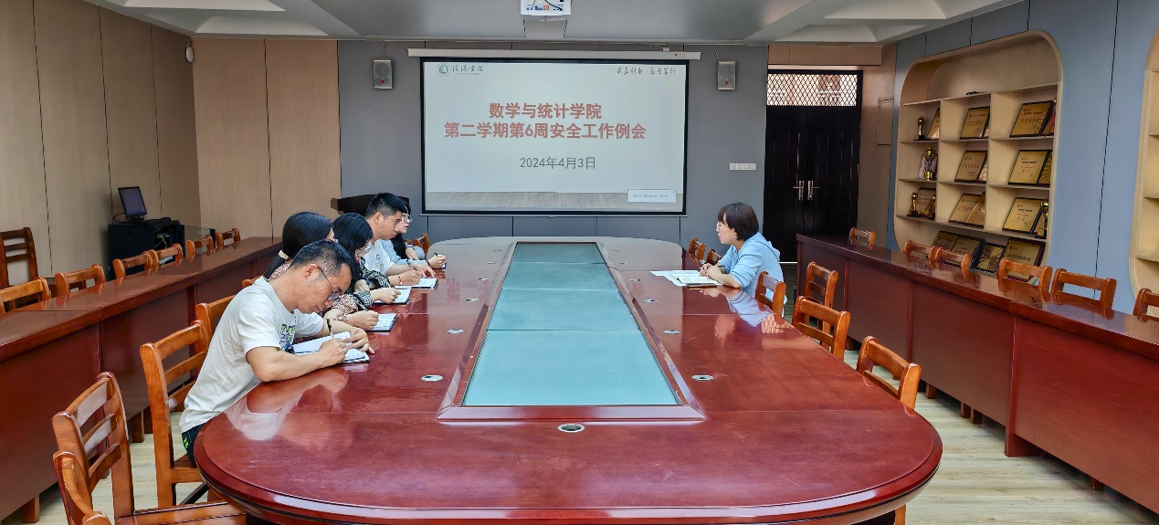 为进一步扎实做好学院现阶段各项安全工作,4月2日下午,数学与统计学院在数计楼407会议室召开了本学期第6周安全工作例会,学工干事田媛、全体辅导员参加会议,会议由田媛主持。