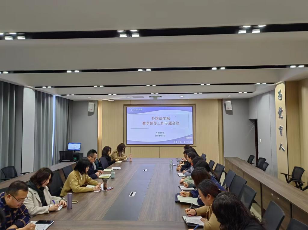 为进一步加强教学质量监控,4月7日下午,外国语学院在外语楼110会议室召开2023-2024学年第二学期教学督导工作专题会议,院领导罗德喜、李静及全体学院督导成员参加了会议,会议由教学副院长李静主持。