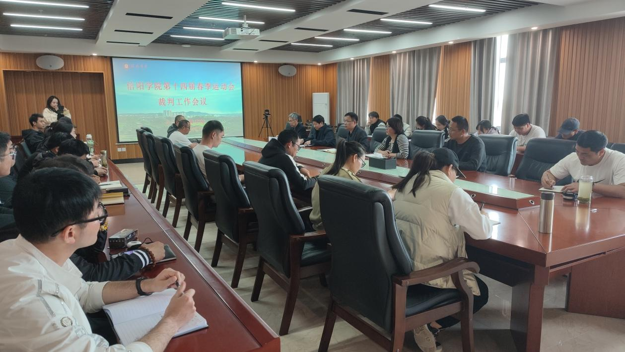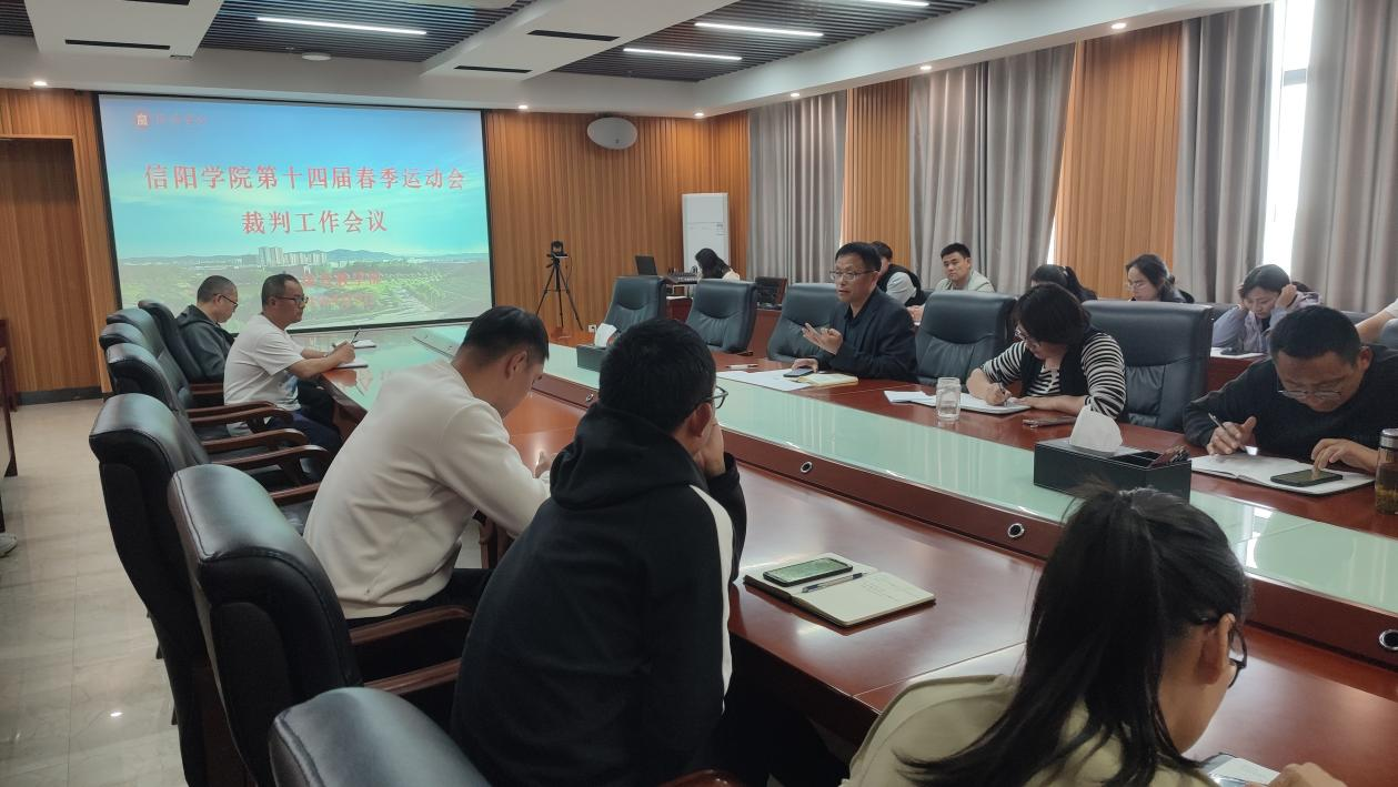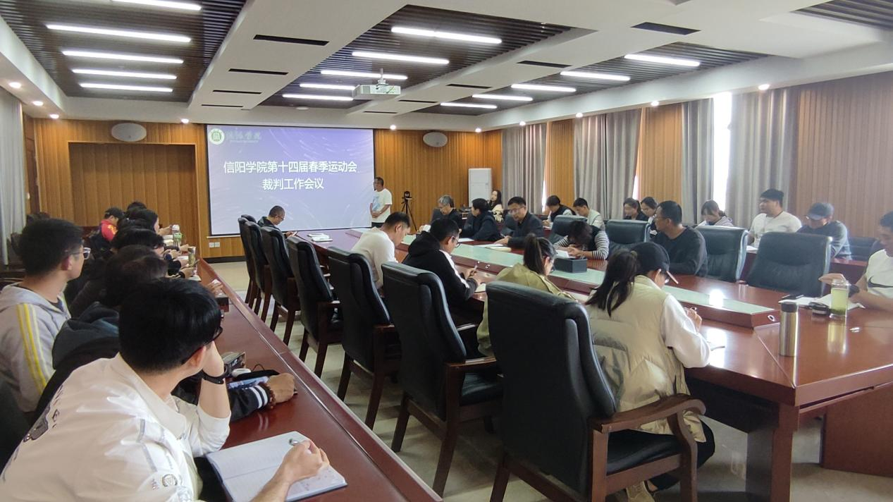 4月9日,在综合楼1410会议室,本届组委会裁判组召开春季运动会裁判工作会议。本次会议旨在确保运动会的各项比赛能够公平、公正、有序地进行。学校教学质量监控中心刘汇、吴锐两位督导专家列席会议。会议由公共体育教学部主任周曙光主持,全体裁判员参加。