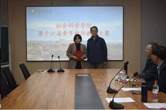 为加强教师教学队伍建设,搭建交流学习的平台,促进教师教学能力提升,全面提高社会科学学院的教育教学质量。根据教学工作安排,社会科学学院于4月9日成功举办了第十六届青年教师课堂教学创新大赛。校教学督导李俊恒教授、陈光副教授;学院教学督导周占生教授、尹全海教授、教学副院长寇博文等担任比赛评委。
