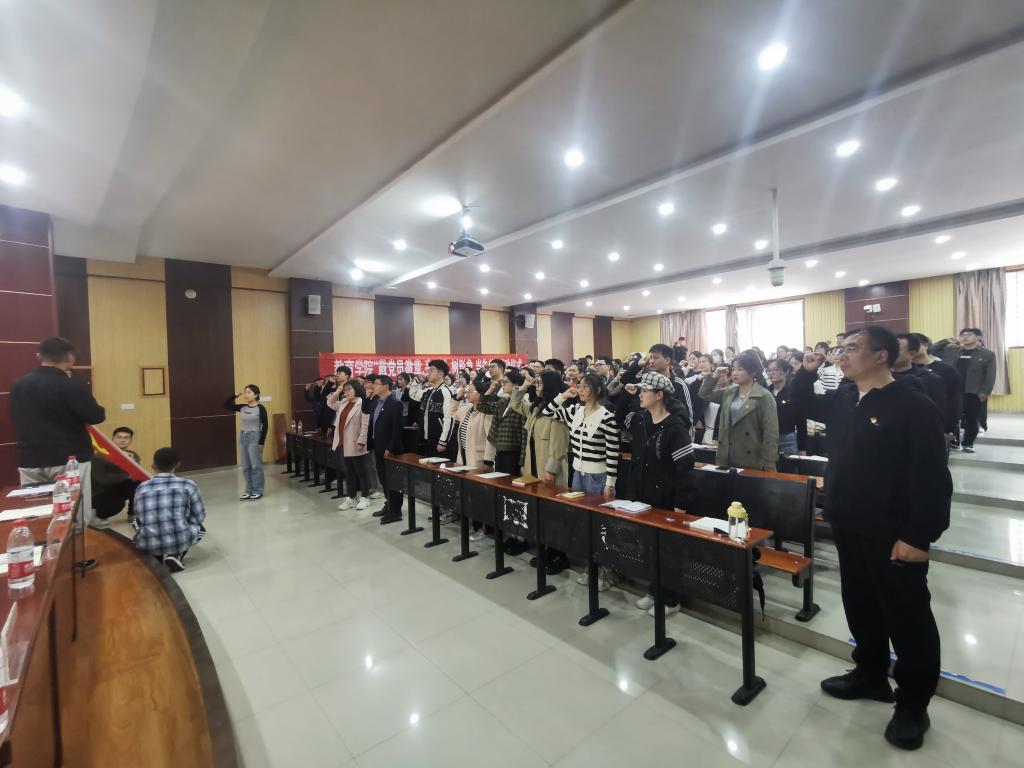 全体师生党员在佩戴上党徽后,在党员代表孔楠同志的领誓下,面向鲜红的党旗进行了庄严宣誓,一起重温了入党誓词。大家通过这种方式追忆入党初心,不忘责任和使命,时刻提醒自己在各自的岗位上充分发挥党员的先锋模范作用。