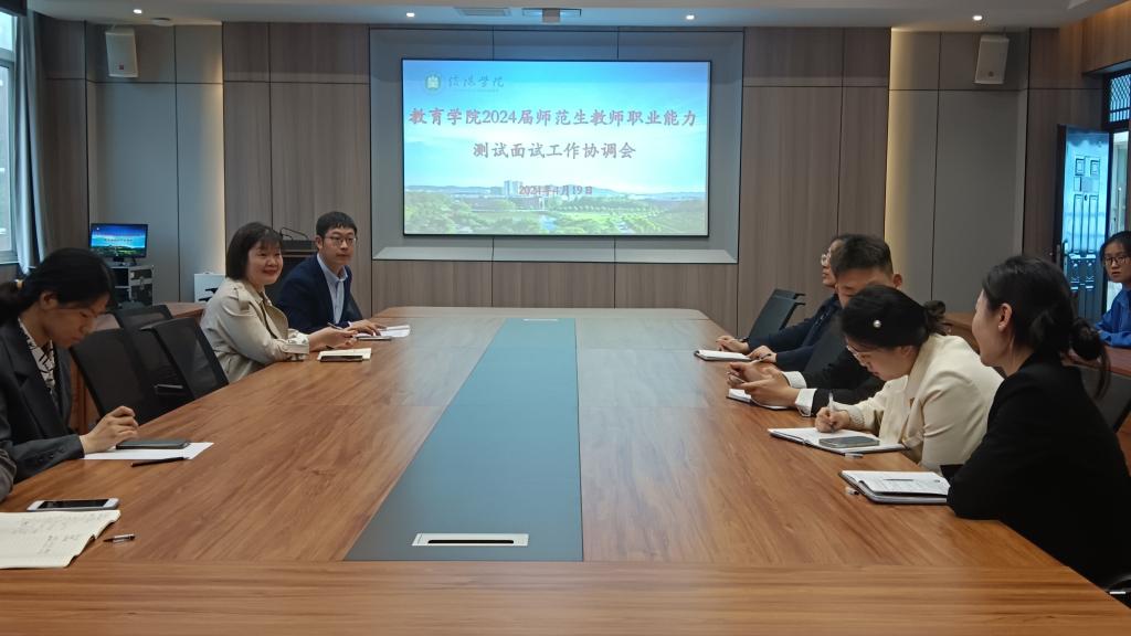 4月19日下午,教育学院在社科楼109会议室举行了2024届师范生教师职业能力测试面试工作协调会。会议由刘勋达老师主持,教学副院长段海丹、全体考务人员、校内面试评委及学生助理参加了此次会议。