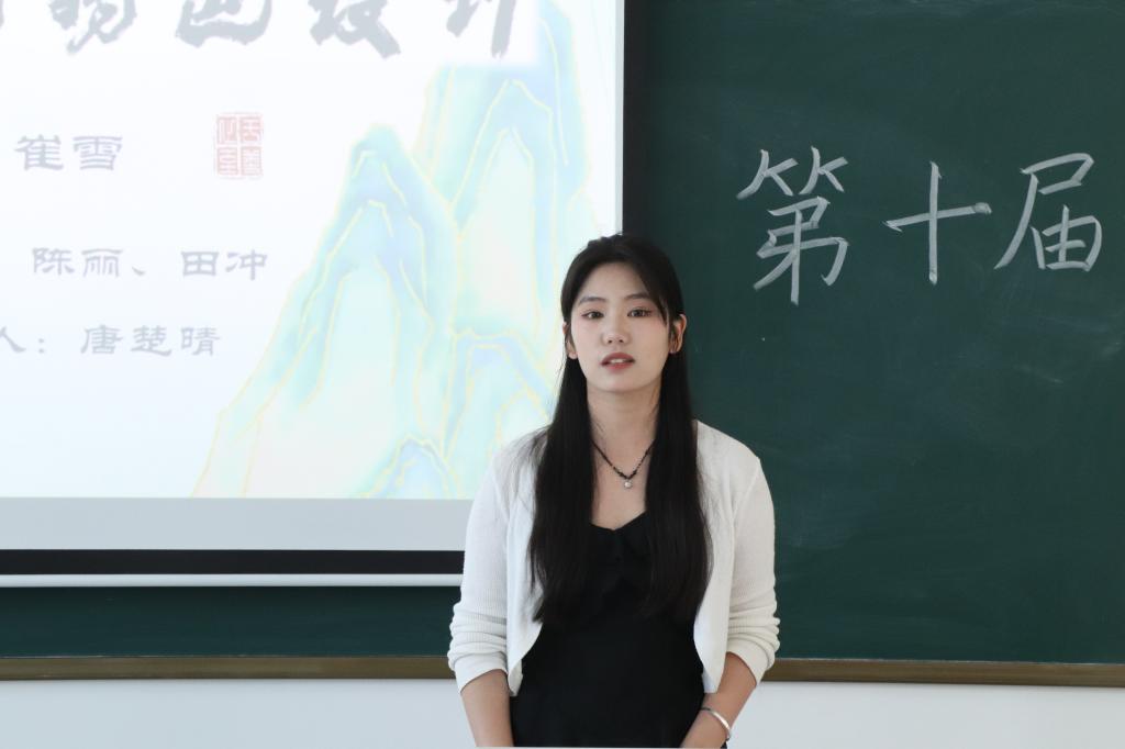 金子琦团队选择文旅融合——“融”出乡村振兴赛道,以信阳罗山为基点开始他们的创业经历,团队成员从项目背景、项目定位、项目策划、商业模式和核心优势来介绍赛道优势,在商业模式上他们结合茶文化、茶旅游等创新方式来振兴乡村。新颖的思路得到评委老师的认可。