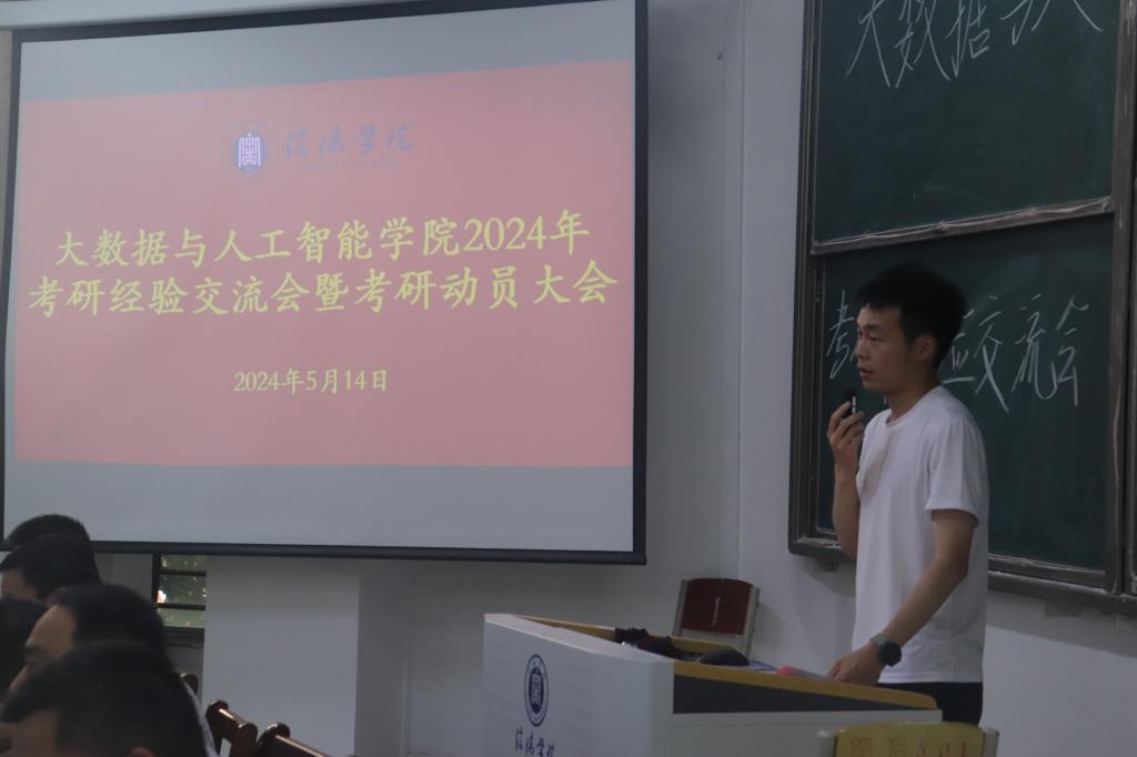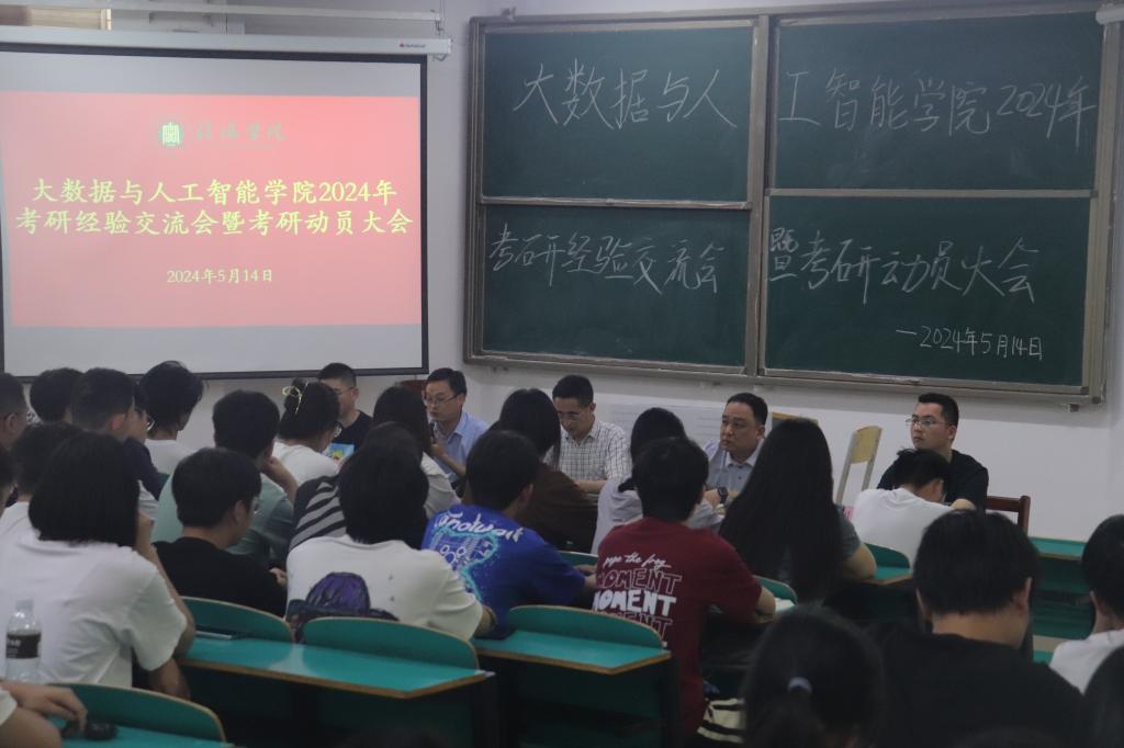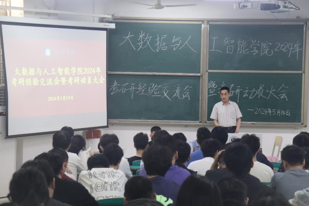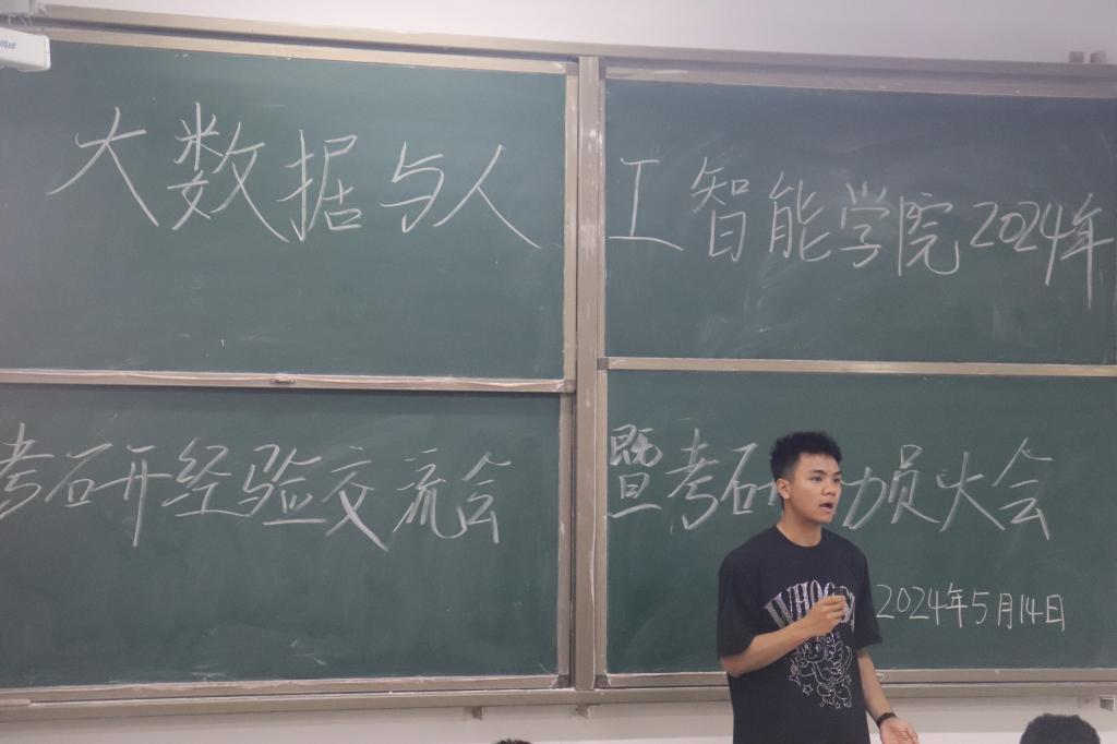 为进一步加强学院学风建设,提高学生的考研热情,帮助更多学生明确考研奋斗目标、科学掌握备考方法、增强考研斗志与信心。5月14日下午,大数据与人工智能学院在数计楼106教室召开2024年考研经验交流会暨考研动员大会。学院院长邬长安、党总支副书记毛凤翔、学工干事鄢杰、带班辅导员刘明珠、周川川、2024年考取研究生学生代表和2021级全体学生参加了此次大会。会议由鄢杰主持。