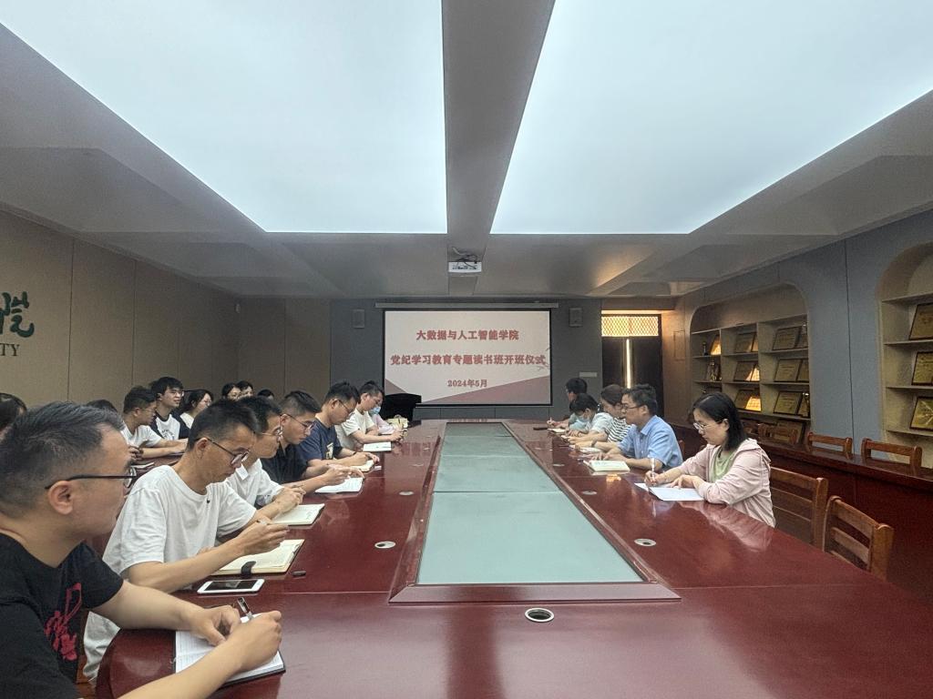 为扎实推进党纪学习教育,按照校党委关于党纪学习教育的统一部署,5月15日下午,大数据与人工智能学院党纪学习教育专题读书班开班仪式在数计楼407会议室举行。学院教工支部党员,部分学生党员代表参加了此次开班仪式。党总支副书记毛凤翔主持了此次开班仪式。